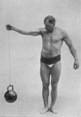 Although phenomenal with the more normal lifts, Goerner was a circus performer and thus did things that are rarely seen now. One of his challenge feats was a stiff-arm, one-hand snatch of 169.75lbs. This is amazing enough and far beyond the abilities of most people, but it was made all the more incredible when you realize it was done on a barbell with a 2 3/8ths-inch shaft!