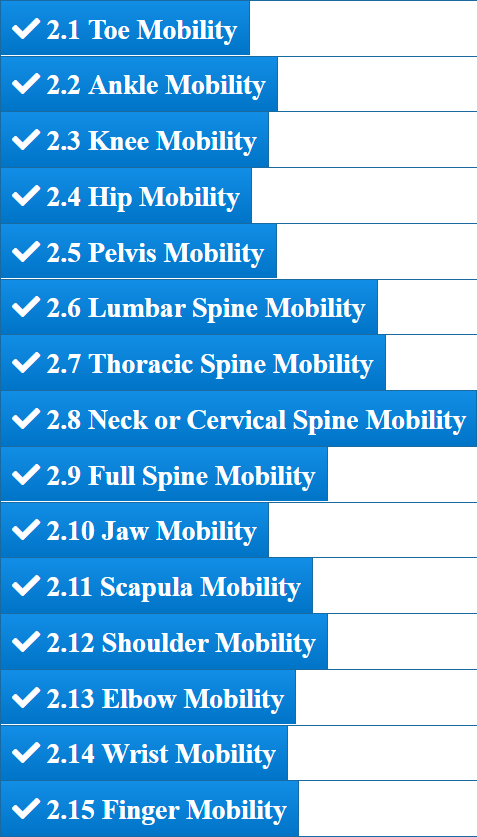 The meat of the course is here where you'll find tons of mobility exercises for every joint in the body. There's the common one's as well as new mobility exercises I came up with that I've never seen covered anywhere else.